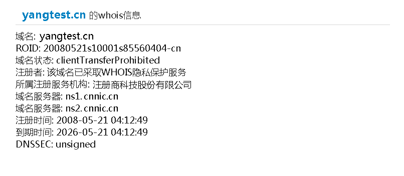 为更好保护“.CN”“.中国”域名用户信息安全,满足用户安全需求,CNNIC向“.CN”“.中国”域名注册用户提供隐私保护服务。使用隐私保护服务的用户,在完成域名实名核验后,WHOIS不对外显示注册者名称等信息,达到保护用户信息安全的目的。